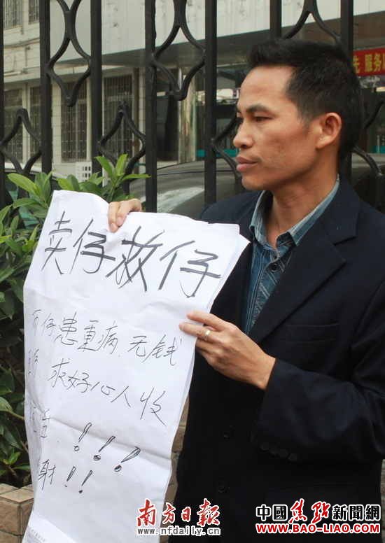 12月20日,广州地铁岗顶站C出口,一对夫妻带着两个儿子,拿着写有“卖仔救仔”的纸张,引起路人围观。当记者赶到时,警方已介入调查,并承诺了解真相后会做出妥善处理。梁文祥谢含含 摄