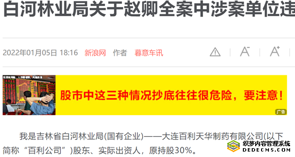 我是吉林省白河林业局(国有企业)——大连百利天华制药有限公司(以下简称“百利公司”)股东、实际出资人,原持股30%。