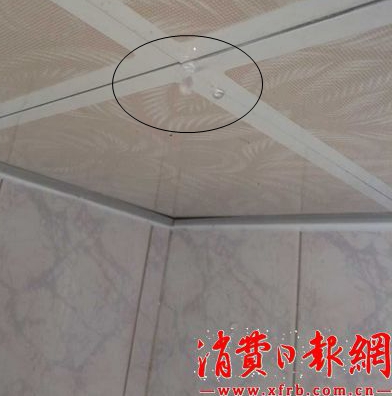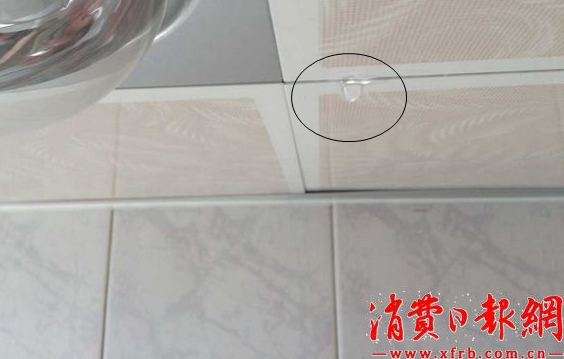 业主何女士家住涪陵区望州路18号顺江花园小区香江苑F栋2单元,搬入小区已有8年。据她称,今天一大早起床要去单位开会,发现自家房屋卫生间内的房顶不 断有水滴渗出。起初她并未在意,但随着时间流逝,漏出的水流越来越大,“哗啦啦像下雨似的,”她说。查看后,她判断水应从楼上住户家中流出。