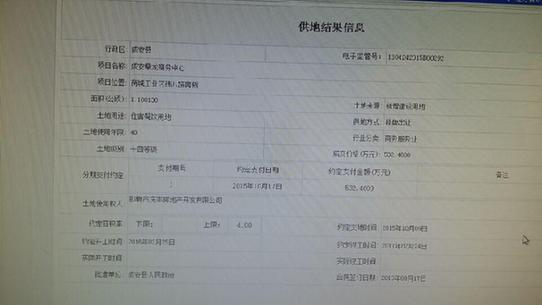 经记者查询得知,成安县国土资源局经成安县人民政府批准,发布成国土告字【2015】011号公告,宗地编号是2014-01-08号,面积为11001.3平方米,宗地坐落于商城工业区纬八路南侧;是于今年9月中旬被当地一家名为邯郸市庆丰房地产开发公司竞标获得,成安县国土局供地结果明确显示:“约定交地时间为2015年10月9日,约定开工时间为2016年2月25日”。然而,成安县国土局发布公告称该宗地“五通一平”,所谓的“净地”出让实际上多宗土地早已被邯郸市庆丰房地产开发公司占用开发成为了成安县“鼎龙商务中心”项目,且该宗土地中标的价格为”零加价”中标。业内人士指出,该项目已经涉嫌暗箱操作,可能会致使国有资产大量流失。