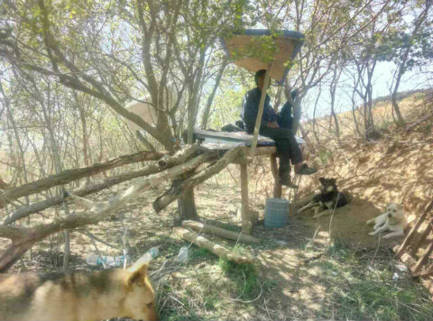 图为遭遇强拆后,纪德仿在这里看护自己承包的树木。现在连这又都被人拆走了。