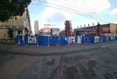 施工现场工人正在用板“遮丑” 建筑垃圾“仍然”成堆
