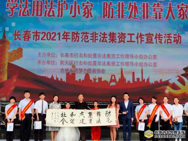 本站讯 为深入推进防范非法集资宣传教育,增强人民群众对非法集资的防范意识和能力,7月9日上午,在吉林省长春市,由长春市金融办主办,南关区政府和吉林省圆梦志愿者协会承办,中国银行吉林省分行、吉林大微融媒体、朝阳区人民检察院、朝阳区南湖街道党工委、长春理工大学化学与环境工程学院、长春市刘晓娟美容医院等单位协办的以“学法用法护小家,防非处非靠大家”为主题的长春市防范非法集资宣传活动在南关区文庙广场隆重举行。长春市金融办、人民银行长春中心支行、吉林银保监局、吉林证监局、市法院、市检察院、市公安局、各城区、开发区相关领导陪同参加,银行、保险公司、融资担保公司、典当公司、小额贷款公司等共50余家单位参加活动并进行普法宣传。长春市政府副秘书长逄吉春、长春市金融办党组书记刘向国、南关区政府常务副区长鲁晓光等领导应邀出席本次活动。长春市金融办相关同志针对如何辨别和防范非法集资进行了全面详细的讲解。