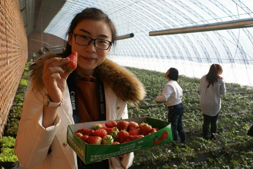 连日来,扎兰屯市卧牛河镇长发村金沃生态采摘园迎来了一批批的游客,慕名前来采摘新鲜爽口草莓。虽然刚过完春节,外边天寒地冻,但是金沃生态采摘园里却热度不减,热闹非凡,走进草莓的果香立刻扑面而来,翠绿的草莓植株上,鲜红欲滴的草莓点缀其间,十分惹人喜爱。兴高采烈的游客,已迫不及待,一边品尝一边采摘,形成一幅春意盎然的景象。据了解,金沃生态采摘园现有温室大棚2栋,草莓种植面积达到3000余平,每天出产草莓约200公斤,采摘期一直持续至6月份。