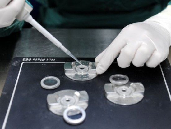 2013年11月22日,河南省人类精子库的工作人员在为精子检测做准备。(新华社记者李博摄)