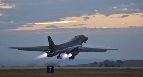 《空军时报》透露,本次行动本打算由两架关岛起飞的B-1轰炸机组成,但最后只有一架可以执行本次任务。