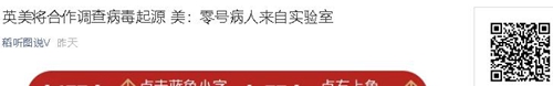 英国决定已加入美国一起合作调查新冠肺炎疫情爆发的起源,其中神秘的武汉病毒实验室将是调查的重点之一。此外,美国情报界也宣称掌握了零号病人的信息。