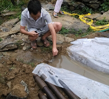 区水务局工程师对出水量进行测量