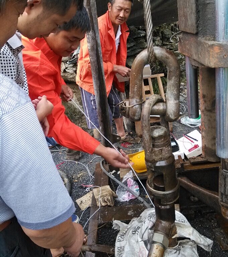 打井机组测量水深现场