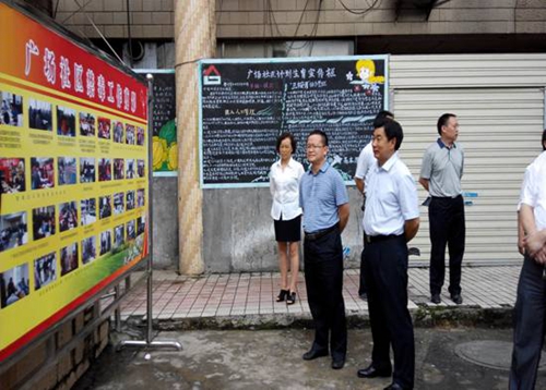 图为市区领导在广场社区检查指导工作