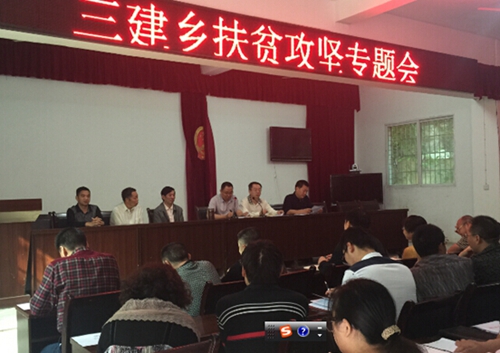 一是召开系列会议。自丰都县扶贫攻坚行动启动以来,三建乡先后组织召开了5次专题会议。召开班子会传达贯彻了习总书记贵州扶贫脱贫攻坚座谈会重要讲话和孙 政才书记四届市委第135次常委(扩大)会重要讲话精神;召开全镇干部会议传达贯彻了中市扶贫脱贫重要会议精神;召开班子会和干部大会传达了丰都县扶贫攻 坚动员大会精神,安排部署了全镇扶贫攻坚工作;召开由扶贫工作队、驻村工作队、扶贫村干部参加的扶贫攻坚专题会议。截至目前,全镇各村召开扶贫攻坚动员会 议全部结束,扶贫攻坚会议精神得到有效贯彻。