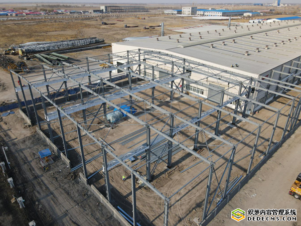 随后,笔者在工作人员陪同下,来到厂区西北侧三一零碳智造产业园项目施工现场,此刻叶片厂房主体结构、总装厂房基础设施建设均已完工,工人们正在有序进行叶片厂房围护结构及总装厂房主体结构的施工工作。据施工人员介绍,自今年3月1日开工以来,即便受到冻土施工、地下管线勘探、新冠疫情等不利因素影响,但叶片厂房与总装厂房均可以依照合同约定时间节点提前半个月交付使用。