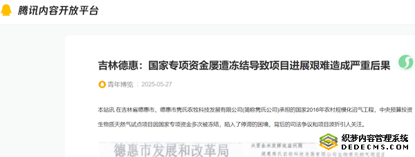 本站讯 在吉林省德惠市,德惠市隽氏农牧科技发展有限公司(简称隽氏公司)承担的国家2016年农村规模化沼气工程,中央预算投资生物质天然气试点项目因国家专项资金多次被冻结,陷入了停滞的困境,背后的司法争议和项目波折引人关注。
