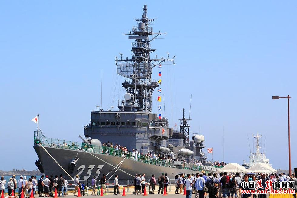 7月11日,日本自卫队举行“公众日”活动,公众可登上军舰参观,并可近距离接触先进武器。图为向民众开放的海上自卫队“竹马”号驱逐舰(DE-233)。