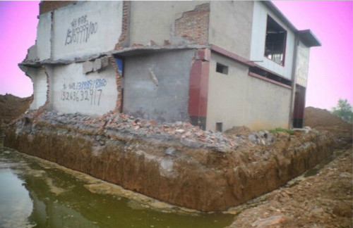 2014年5月2号开始,李宪东房屋周围有不明身份人员开始挖沟。3号,他再次到中央巡视组反映情况,第二天,大门口就堆满石头和砂子,房屋窗户玻璃被砸 坏,卷帘门被利器砍坏。随后连续几天,不法分子继续在李宪东家房屋周围挖沟,房屋周围被挖成宽深各三米左右的深沟,距离房基不足七十公分。后来,不法分子 从300多米以外的绣源河铺设塑料管道,利用两台水泵抽水,灌入李宪东房屋四周的深沟,时间长达两个半月,其目的就是将李宪东房屋浸泡后自行坍塌。在这期 间,章丘市埠村街道某村村书记说:这里的土地他买下了,李宪东要从这里路过,走一步要交一万块钱,惹得他不高兴了,要他爬着走。