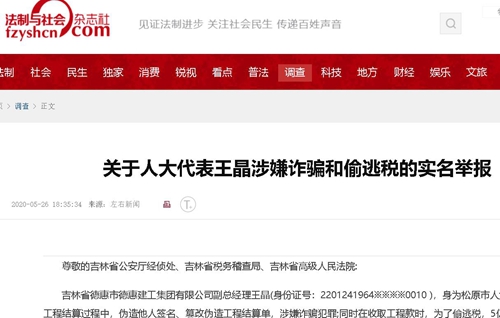 关于人大代表王晶涉嫌诈骗和偷逃税的实名举报