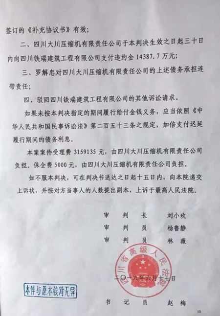 中国民生播报网讯(记者 赵炎 何薇薇):近日,四川省高级人民法院女法官刘某玫被指枉判,让地产商零成本鲸吞企业上亿资产的消息不胫而走,在社会上引起广泛关注。由于政策规划仍未批准,致使四川大川压缩机有限责任公司与四川铁瑞建筑工程有限公司(以下称:房地产商)签订的这份“最终结果不确定”、“合同总额仅为预期数”、至今都不能推动实施的典型“非金钱合同”让双方对簿公堂,刘某玫法官把未变性为商宅用地作为虚构价值,判决大川公司赔偿房地产商1.43亿元违约金;再以工业性质的土地价值去执行法律程序,网友对法官显失公平的这份神判决纷纷表示质疑。