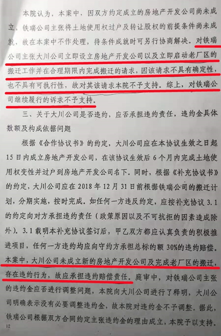质疑五:刘某玫法官把未变性为商宅用地作为虚构价值,判决大川公司赔偿房地产商1.43亿元违约金;再以工业性质的土地价值去执行法律程序,让房地产商不花一分一厘就让大川公司“光屁股出门”。请问:这算不算明火执仗的打劫?
