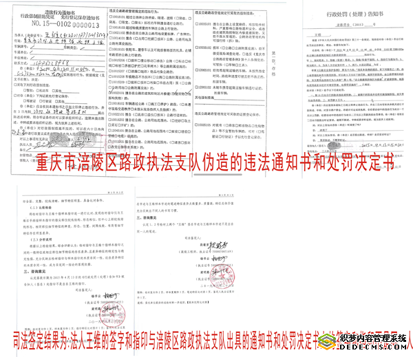 企业法人、股东、家庭受到各种打圧后,他们通过信访途径反映问题,龙桥政府街道岀据了龙信访函字[2018]33号,明确了温泉城纳入拆迁范围,等到的结果却是2019年4月30日在温泉城大门张贴的一份重庆市涪陵区路政执法支队的强拆通知,支队于2015年4月13日作出的涪路罚[2015]7号处罚决定书,进行强制拆迁,但是根据股东胡祖国、法人王维描述,涪路罚[2015]7号处罚决定书的原始调查笔录内容法人王维签字和指印全系伪造,并且有司法鉴定书为佐证。