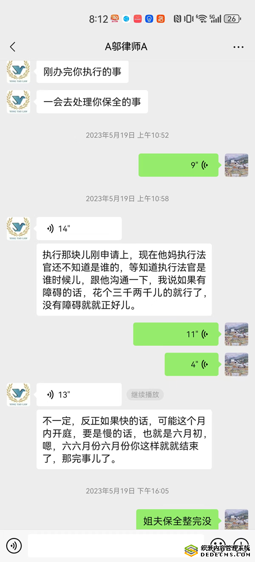 一个小时之后,孙荣增接到邬春旭律师传来的消息:“法官说了,下午就把他们的异议驳回,不同意。开庭后延几天了,下午需要制作驳回异议的裁定书”。