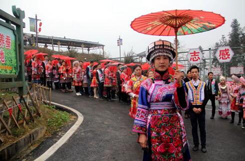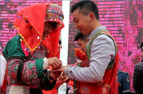 除了苗族原生态集体婚礼展示外,文艺演出、苗族新婚宴、集体相亲、农产品展销等精彩环节吸引了广大游客和村民现场观看、体验互动。